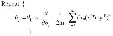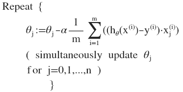 =\frac{1}{2m}\sum\limits_{i=1}^{m}{{{\left(&space;{h_{\theta}}\left(&space;{x^{(i)}}&space;\right)-{y^{(i)}}&space;\right)}^{2}}}) 其中:={\theta^{T}}X={\theta_{0}}{x_{0}}+{\theta_{1}}{x_{1}}+{\theta_{2}}{x_{2}}+...+{\theta_{n}}{x_{n}})