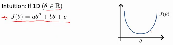 某些时候用正规方程是更好的解决方案;如下图:假设这是一个关于实数θ的二次函数J(θ)
